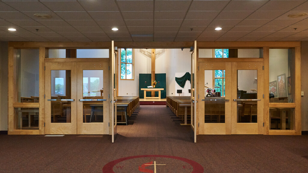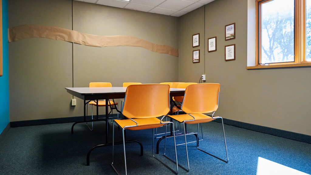 Seating over 250 people, the sanctuary includes audio/visual equipment, staging area, piano, motorized window shades, dimmable lights, and other vital equipment for performances or large presentations. Due to the complexity of this performance area, when requesting sanctuary usage, Cross Winds staff supervision is required as part of the facility fee.
