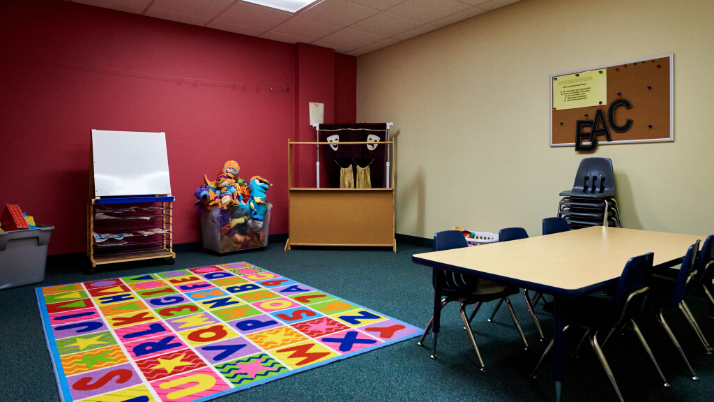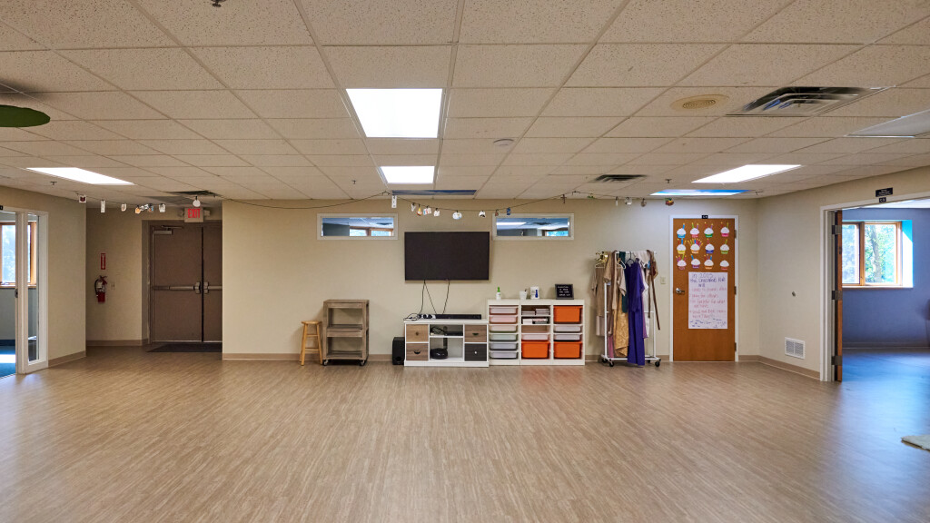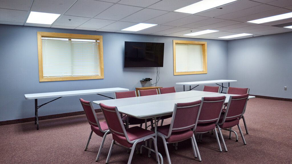 This multipurpose wing includes a large group gathering area surrounded by several classrooms of different sizes. The main gathering area as well as several classrooms have wall mounted TVs and flexible seating arrangements. The activity room can also seat larger groups and has projector capabilities upon request.