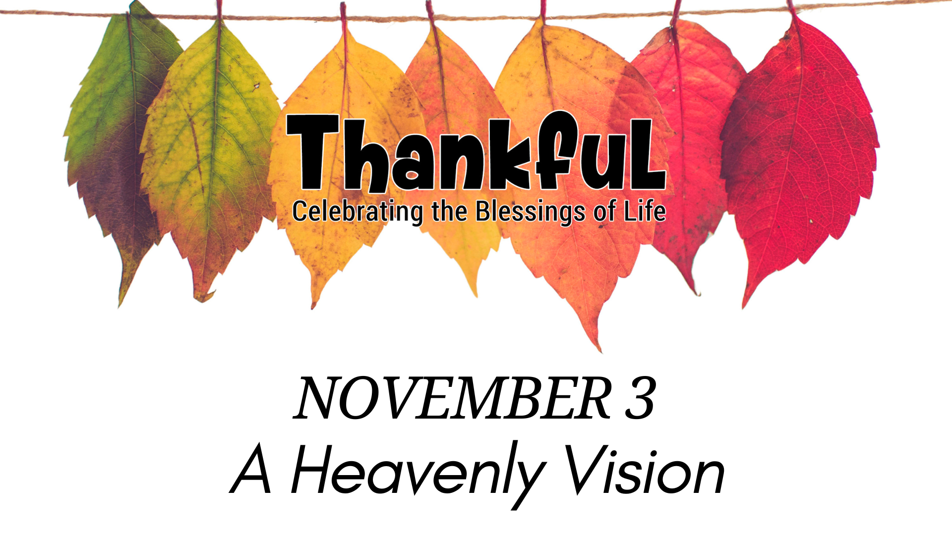 A Heavenly VisionNovember 3, 2024Series: Thankful: Celebrating The Blessings of LifePassage: Revelation 21:1-6Speaker: Stina KoppesWatch on YouTube