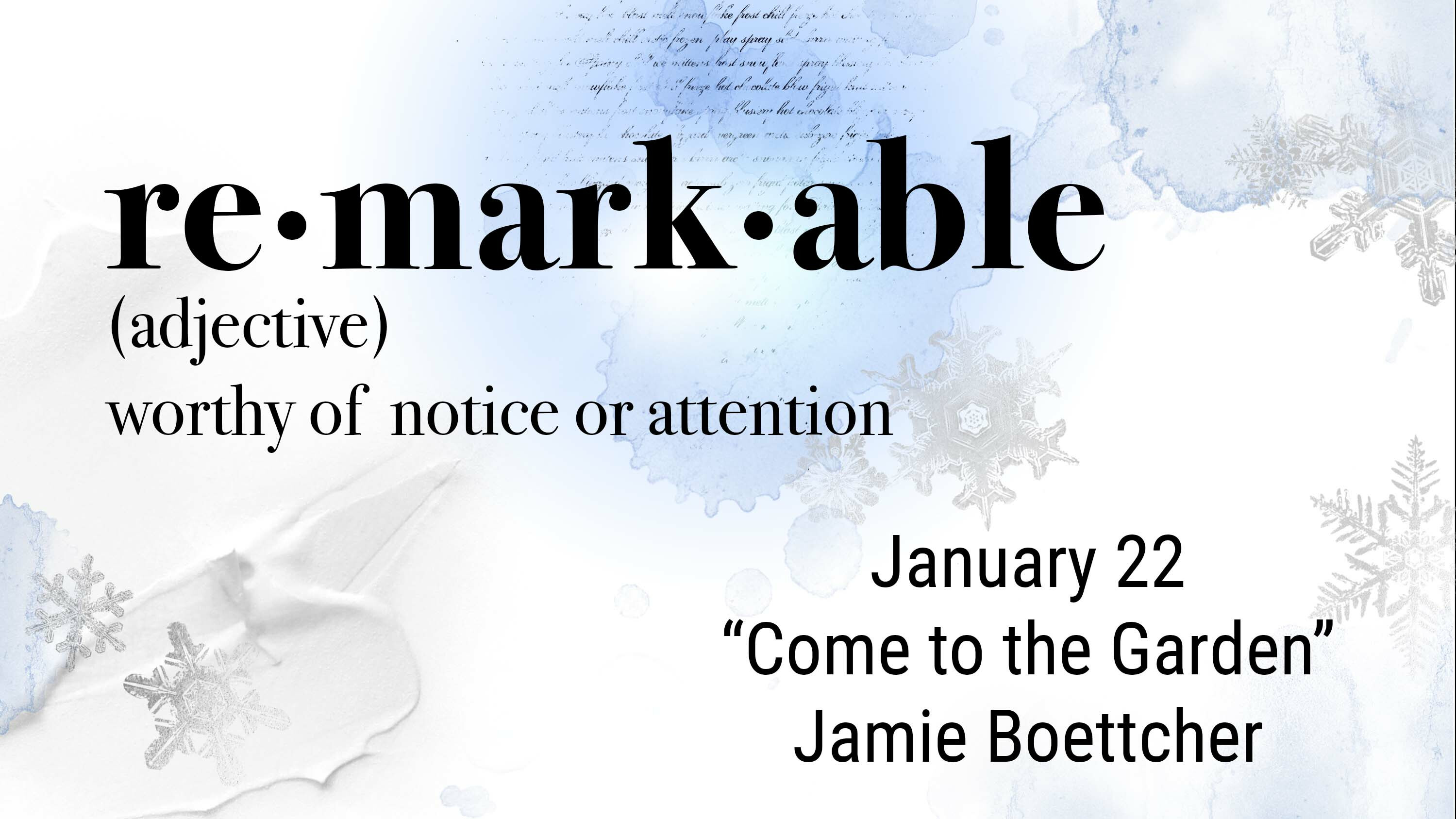Come to the GardenJanuary 22, 2023Series: RemarkablePassage: Psalms 119:169-176Speaker: Jamie BoettcherWatch on YouTube