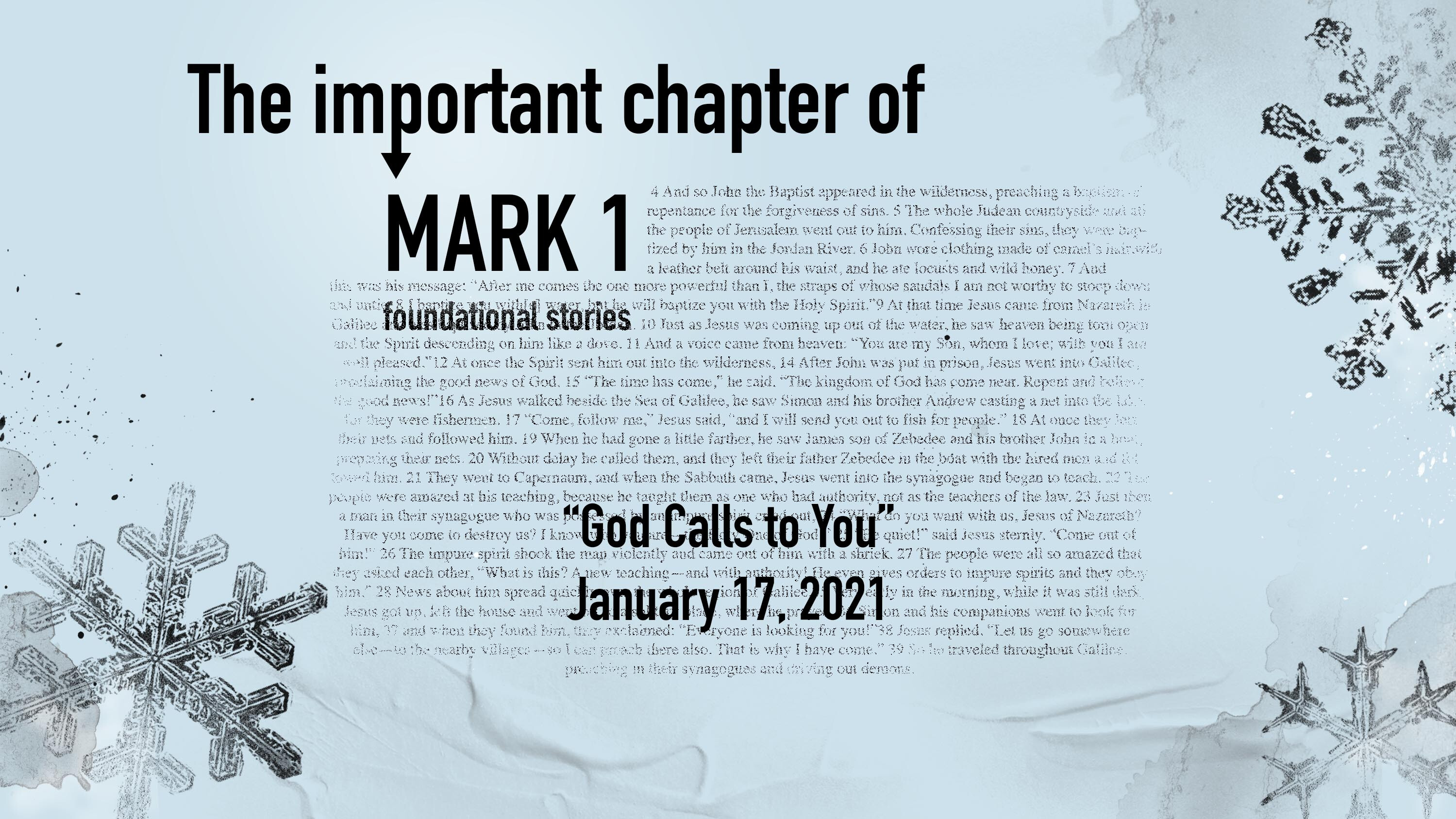 God Calls to YouJanuary 17, 2021Series: The Important Chapter of Mark 1Speaker: Mike DyrdalWatch on YouTube