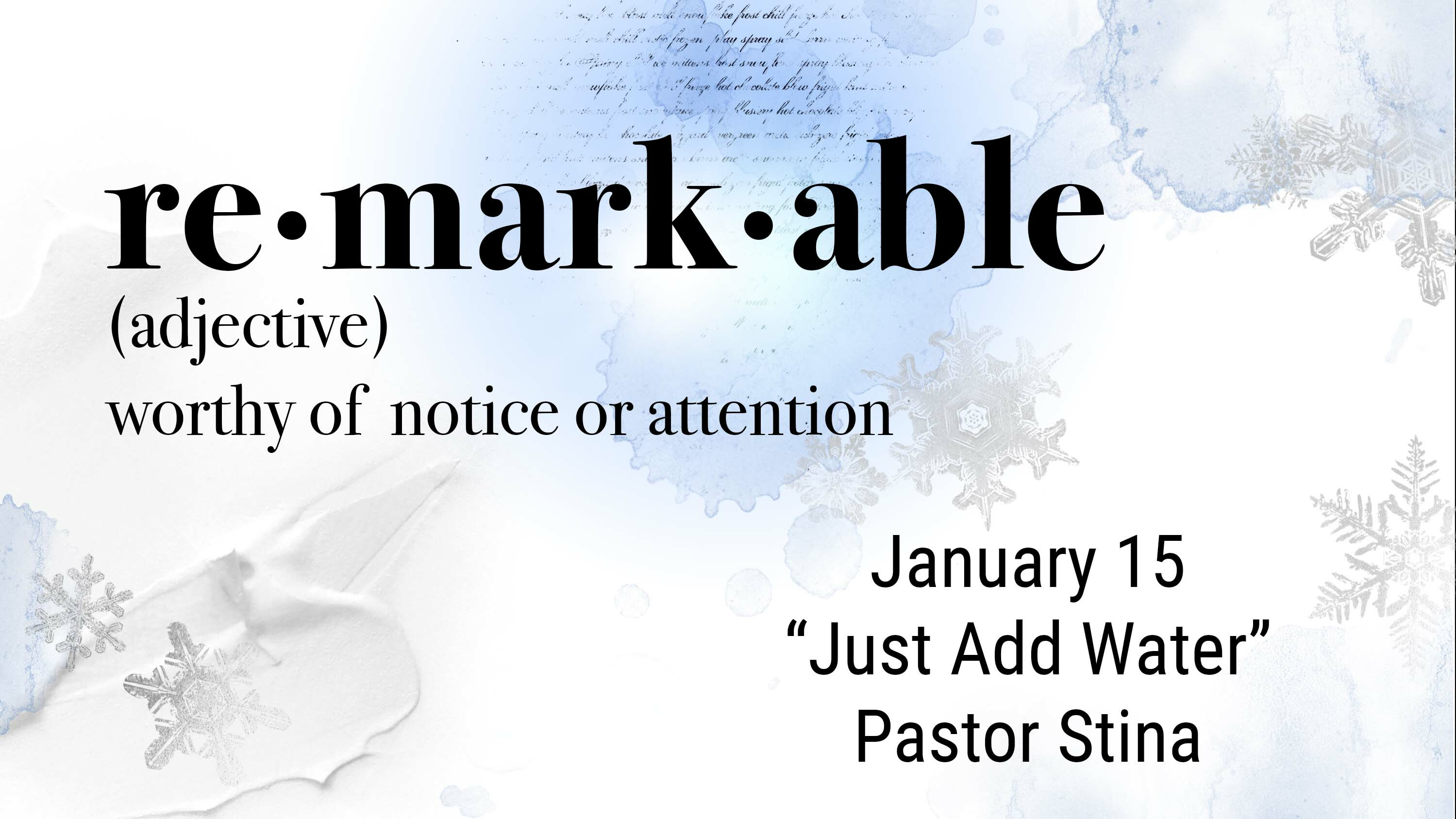 Just Add WaterJanuary 15, 2023Series: RemarkablePassage: Matthew 3:13-17Speaker: Stina KoppesWatch On Youtube