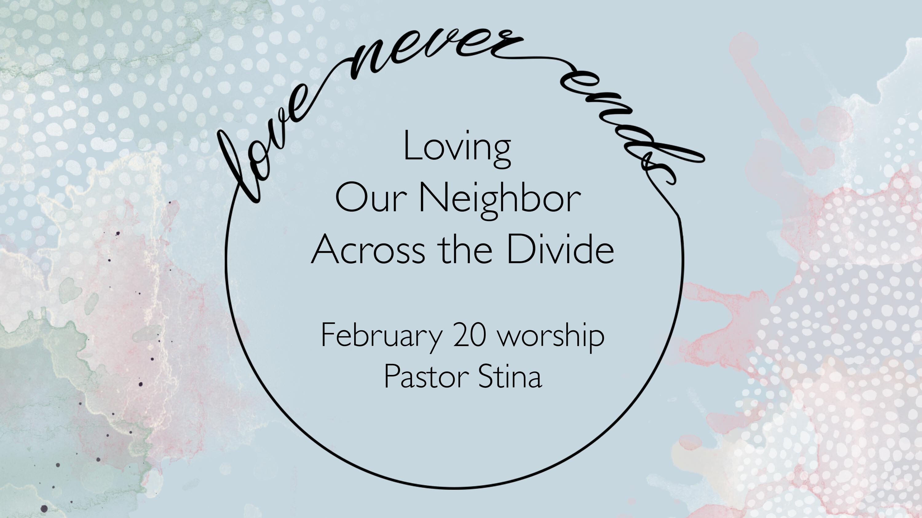 Loving Our Neighbor Across the DivideFebruary 20, 2022Series: Love Never EndsPassage: Romans Speaker: Stina KoppesWatch On YouTube
